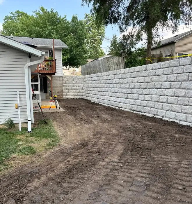 Installation follows, where the wall is built layer by layer. Each course is carefully placed and leveled to ensure strength and alignment. Drainage components are installed during this stage to prevent future issues.